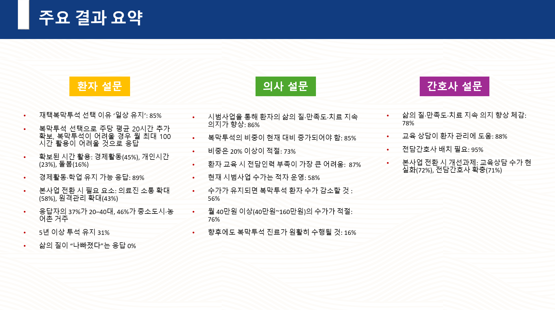 복막투석 재택관리 시범사업 의료현장 설문결과 (남인순 국회의원실, 대한신장학회 공동)