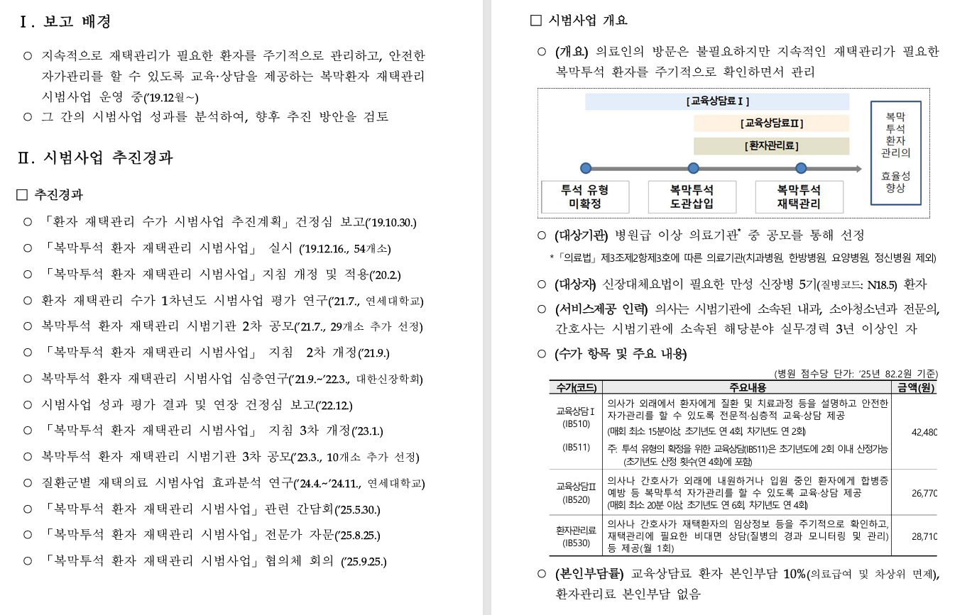 2025년도 건강보험 시범사업 성과보고서 - 복막투석 환자 재택관리 시범사업