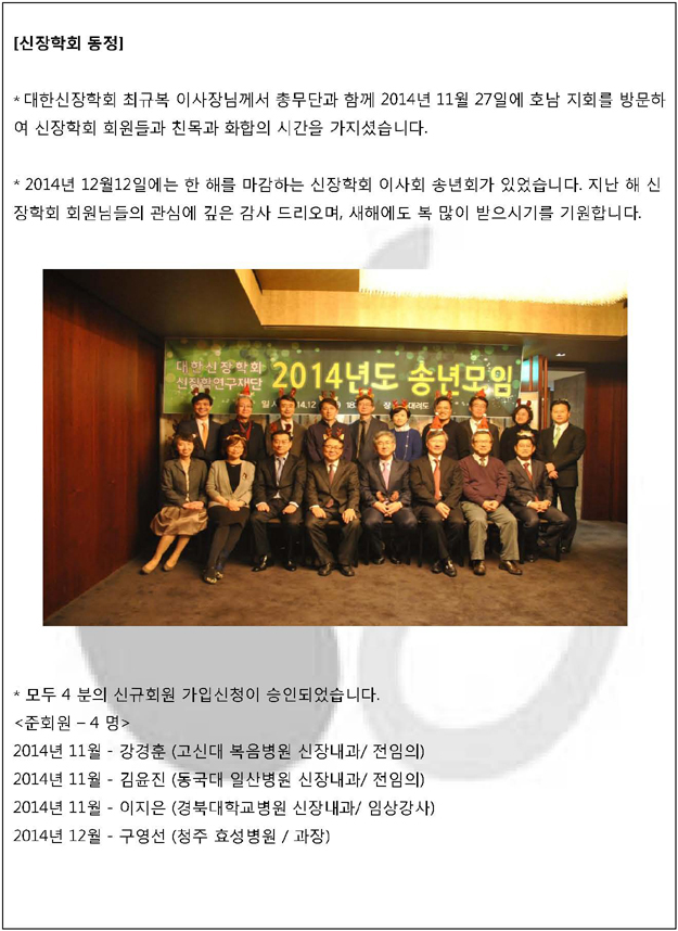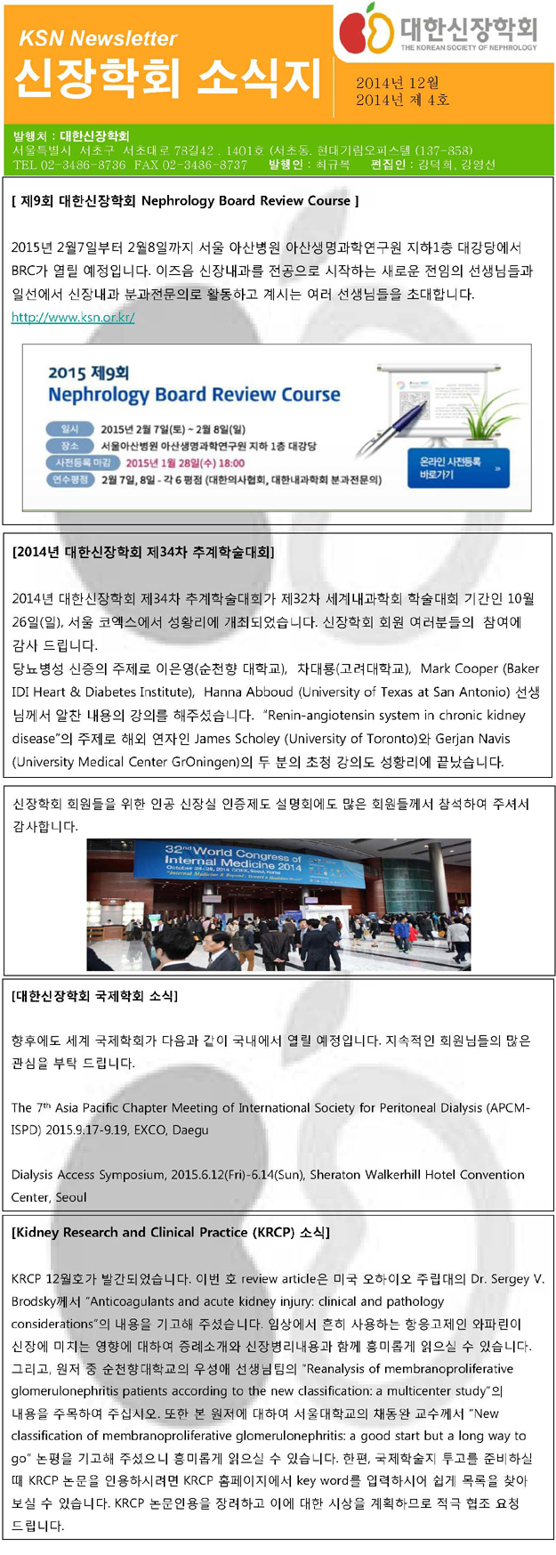 [KSN Newsletter 신장학회 소식지]2014년 12월 제4호