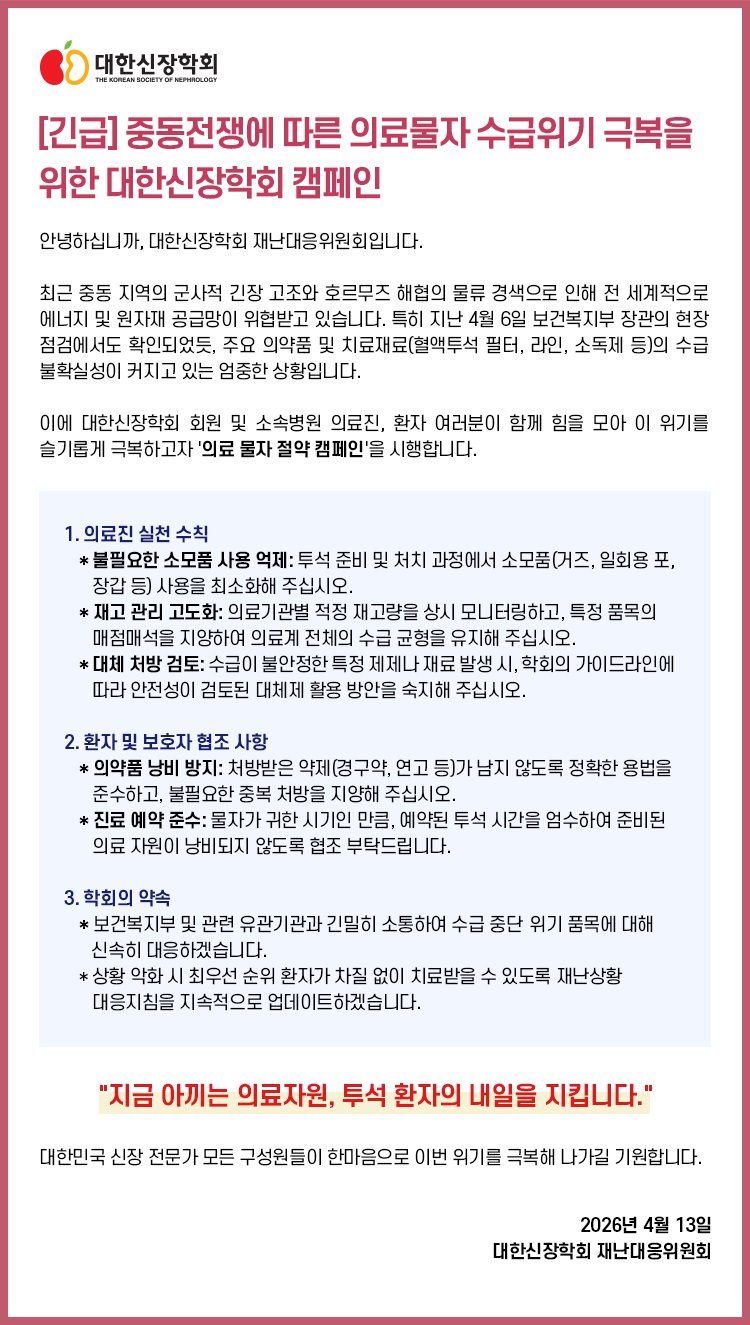 [긴급] 중동전쟁에 따른 의료물자 수급위기 극복을 위한 캠페인 New